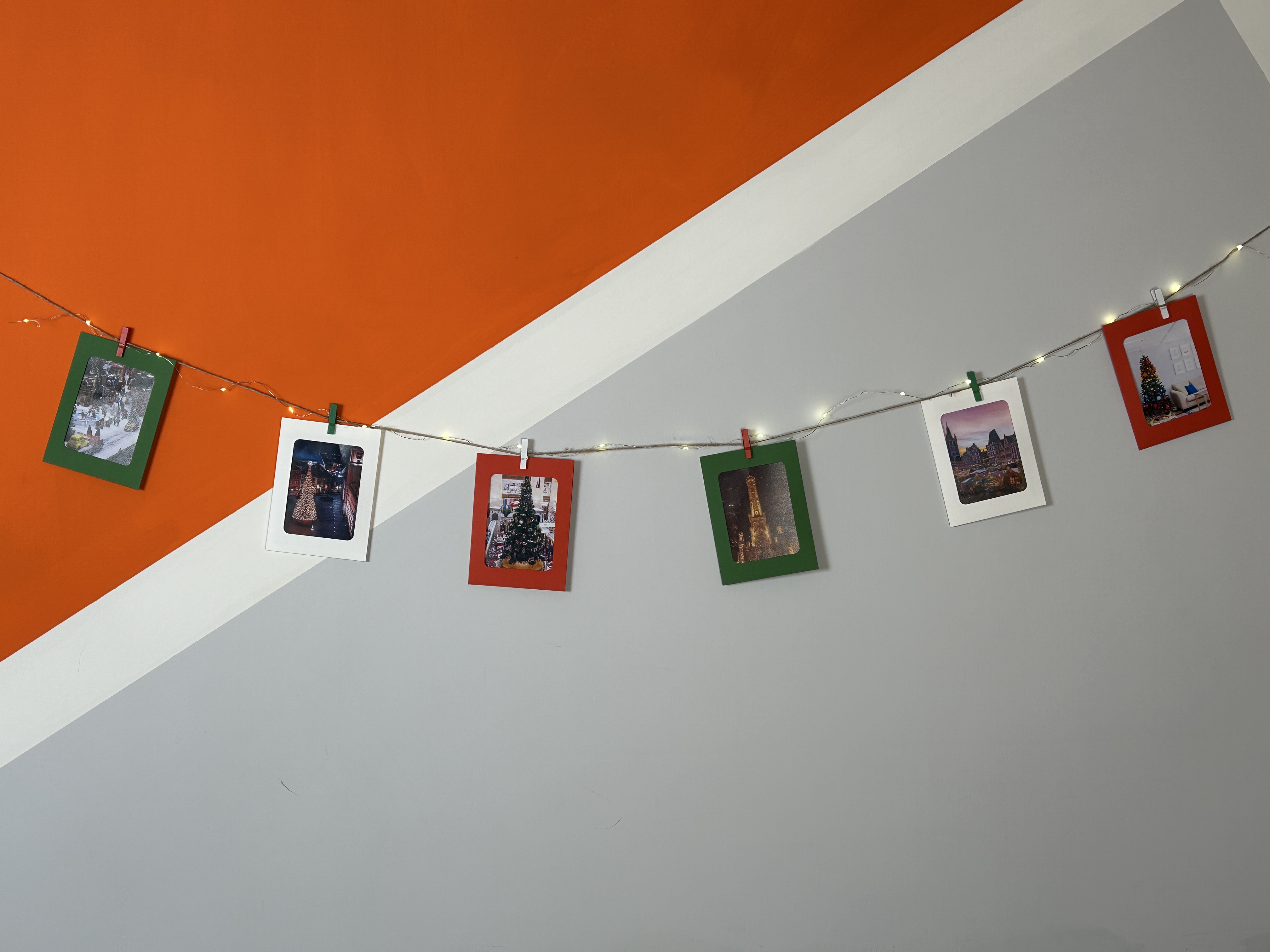 主體為紅、綠、白六幅聖誕配色的紙相框