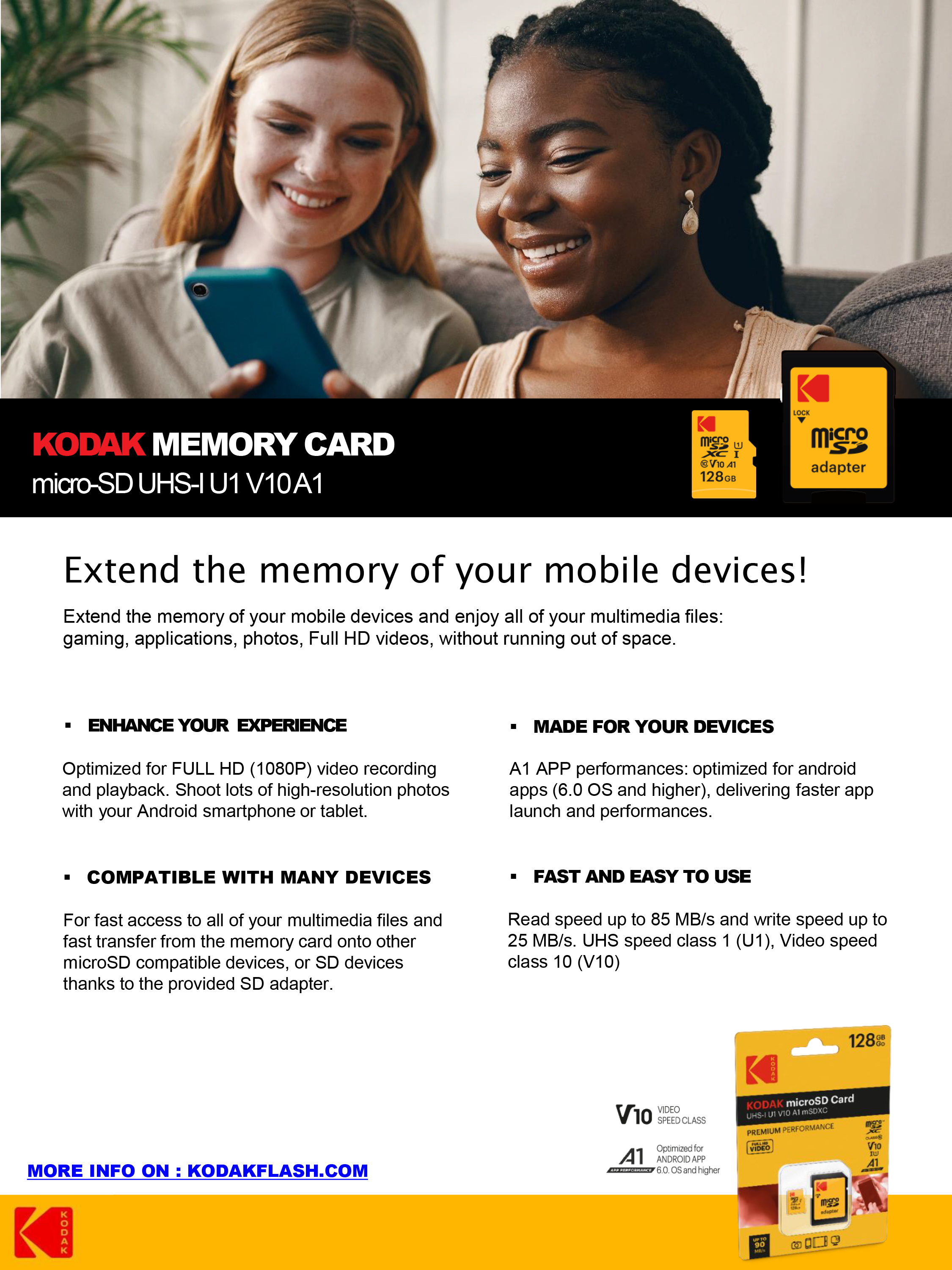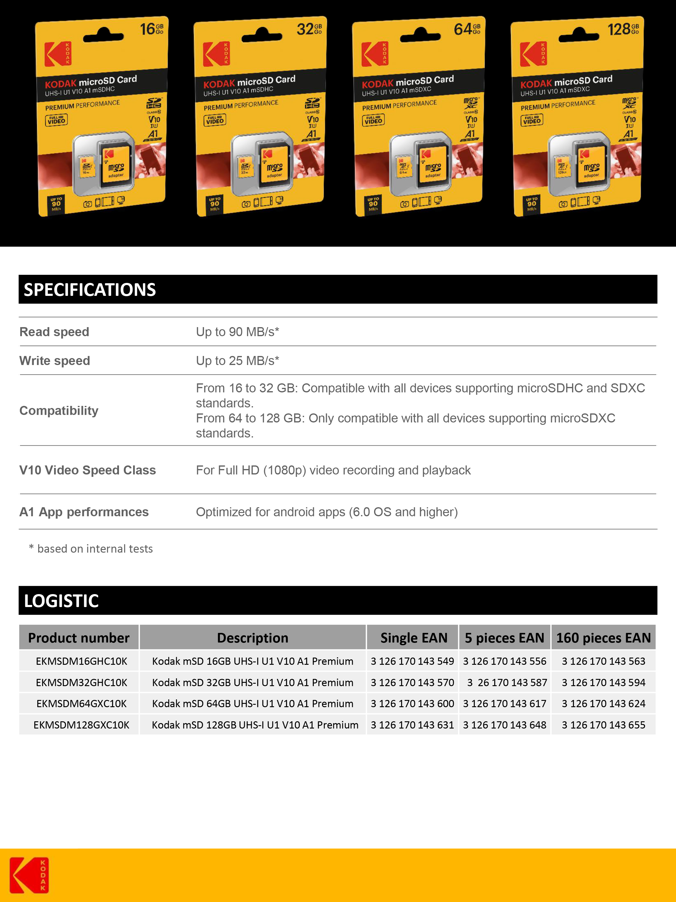 KODAK microSD PREMIUM PERFORMANCE Class 10 UHS-I U1 V10 A1 64G