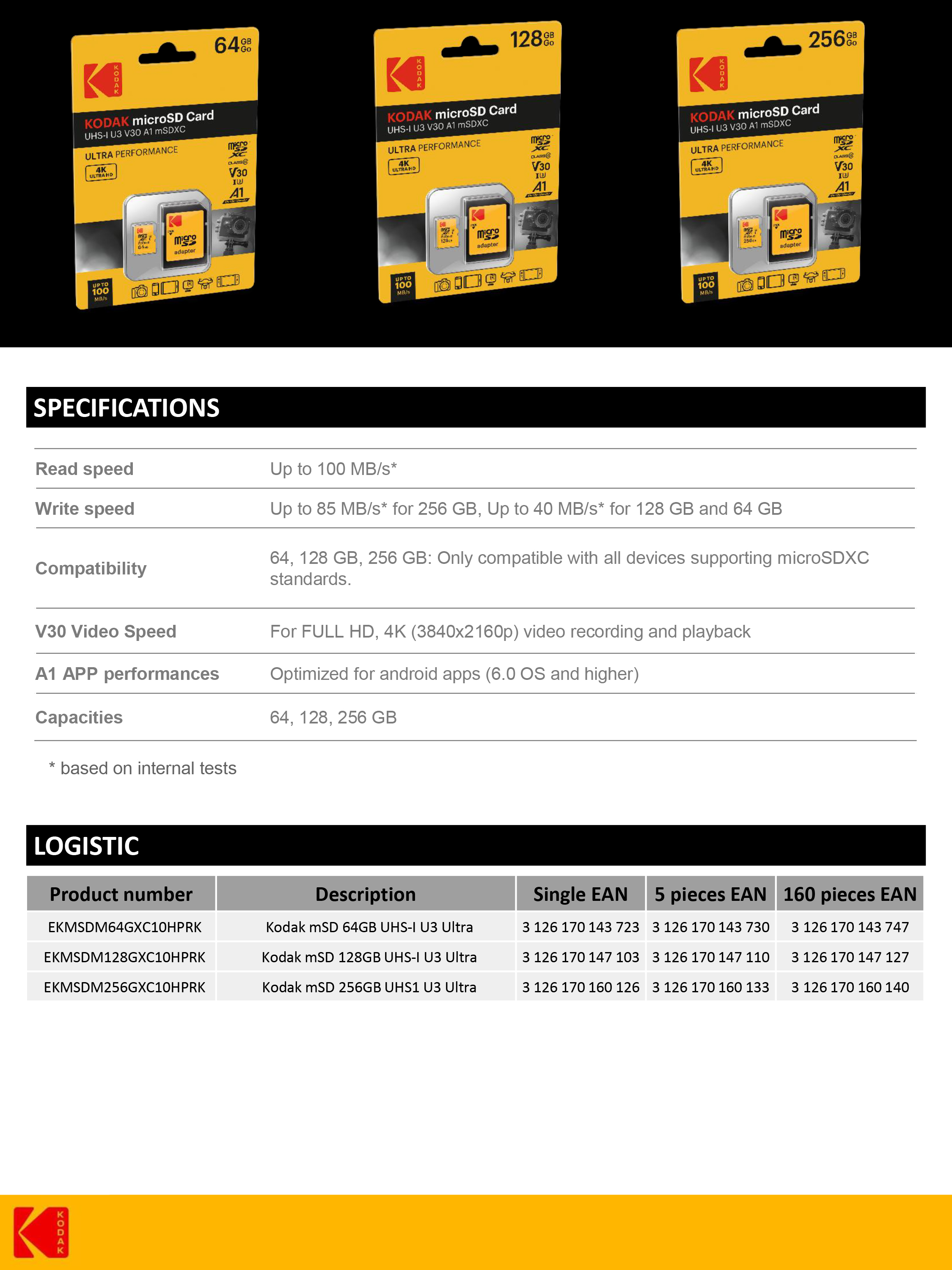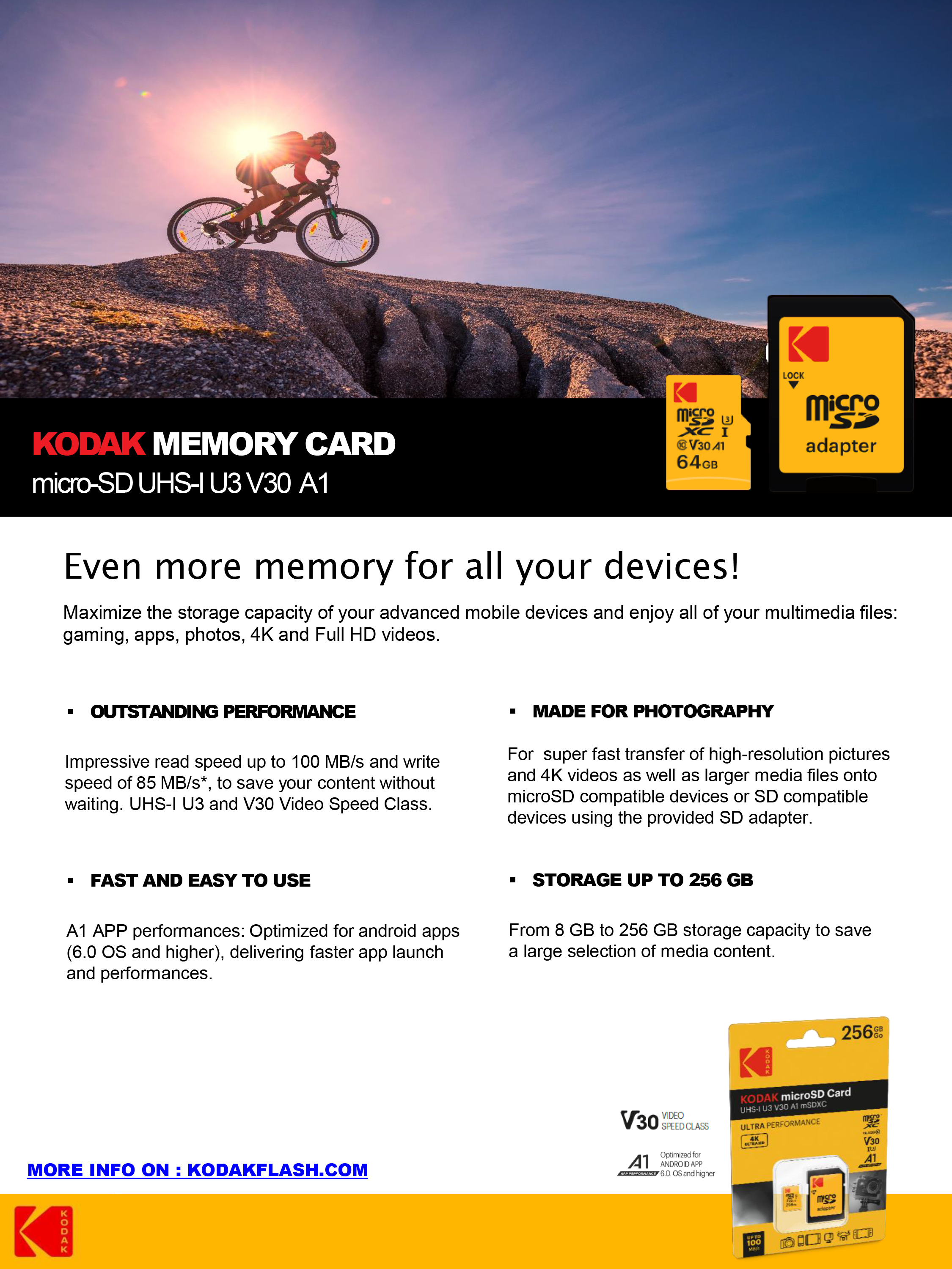 KODAK microSD ULTRA PERFORMANCE Class 10 UHS-1 U3 V30 A1 256GB