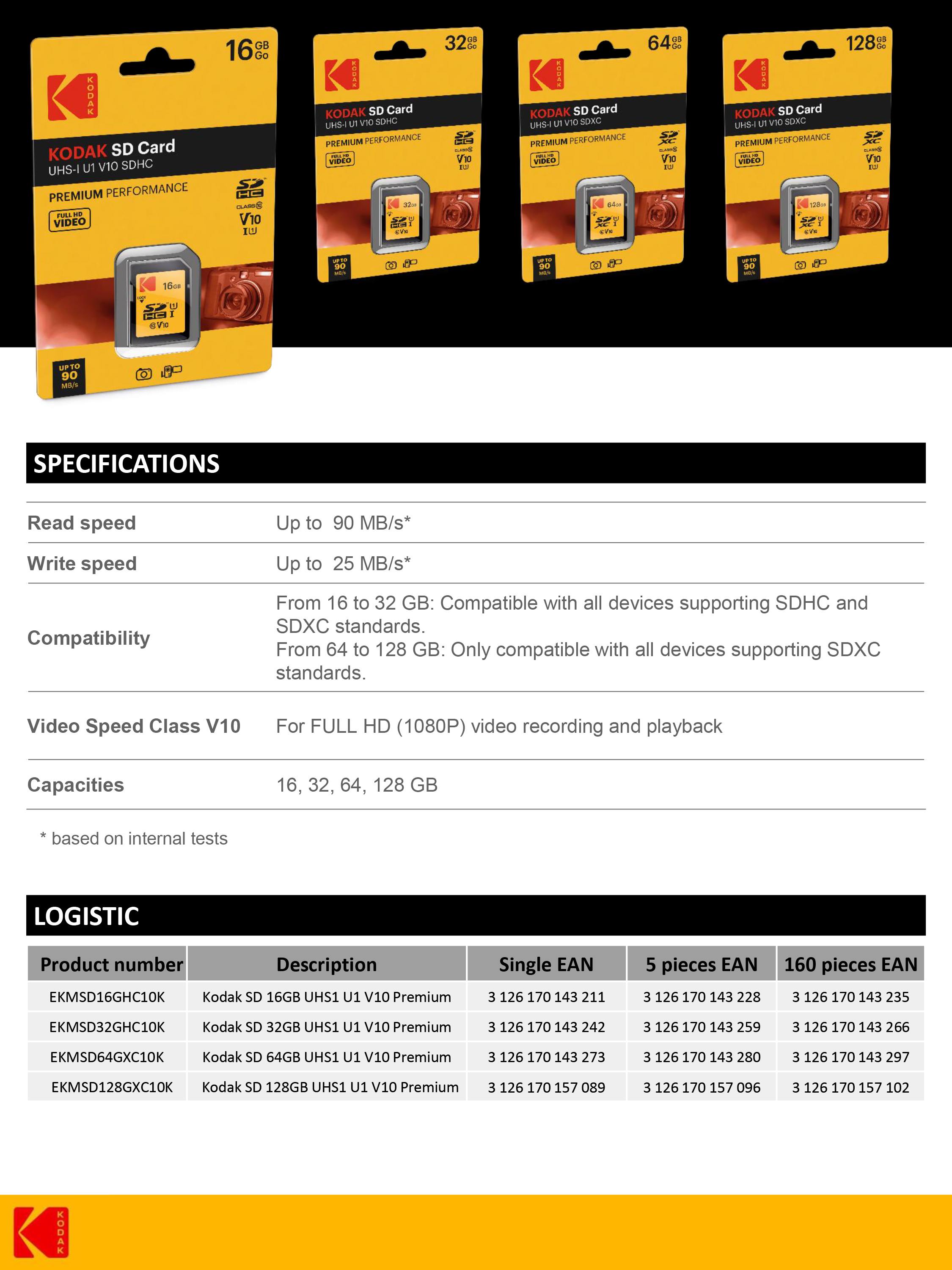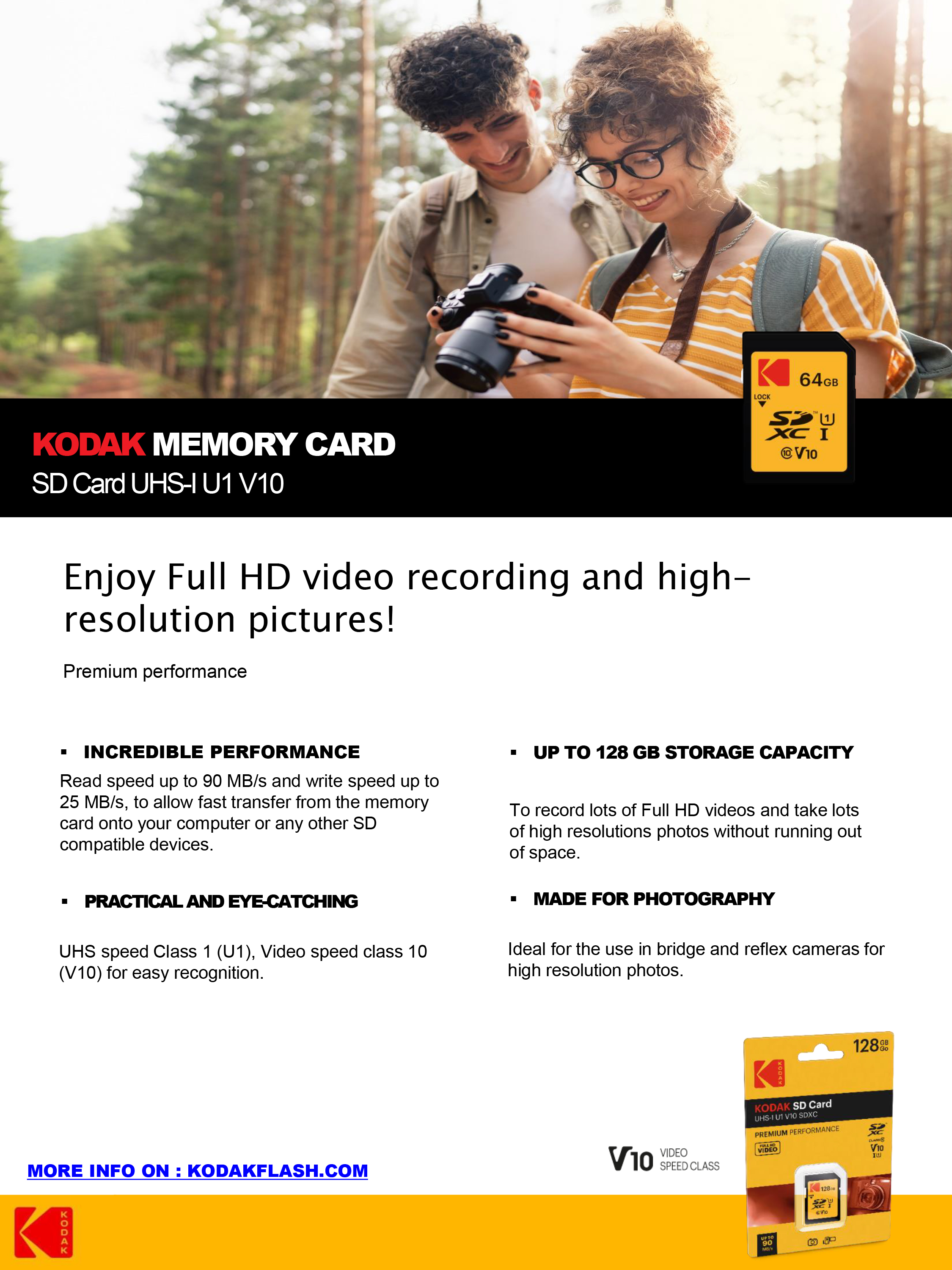 KODAK SD PREMIUM PERFORMANCE Class 10 UHS-I U1 V10 128G